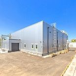 - 1 445 sq. m of 100 and 150 mm thick wall sandwich panels with mineral wool insulation. At the customer's request the panels are made in white-aluminum color RAL 9006 with PVDF coating. PVDF boasts high corrosion resistance, high UV resistance. On the inside, the sandwich panels are made in the signal white color RAL 9003