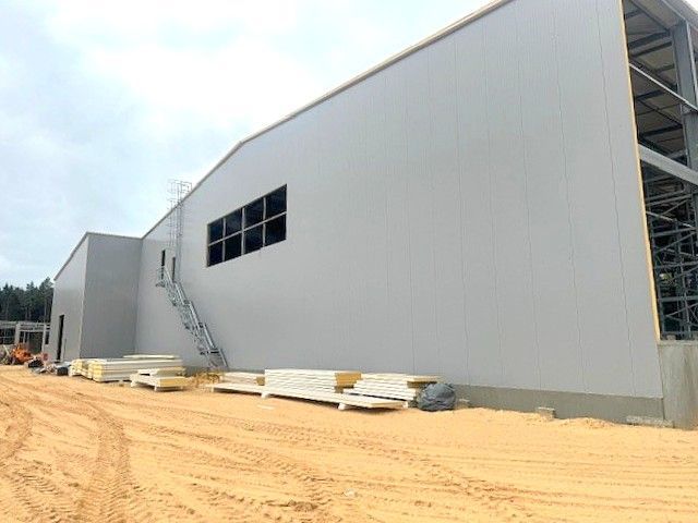 Within three weeks PH Insulation has produced 6 169 square meters of PIR Premier wall and 4 168 square meters of roof sandwich panels. According to the project design, the exterior of the wall sandwich panels is manufactured in gray color RAL 7004, while the interior is coated with food-grade stainless steel AISI 304. The AISI 304 coating has excellent corrosion resistance, making it a popular choice in the food and medical industries. The thickness of the wall sandwich panels is 100 mm.