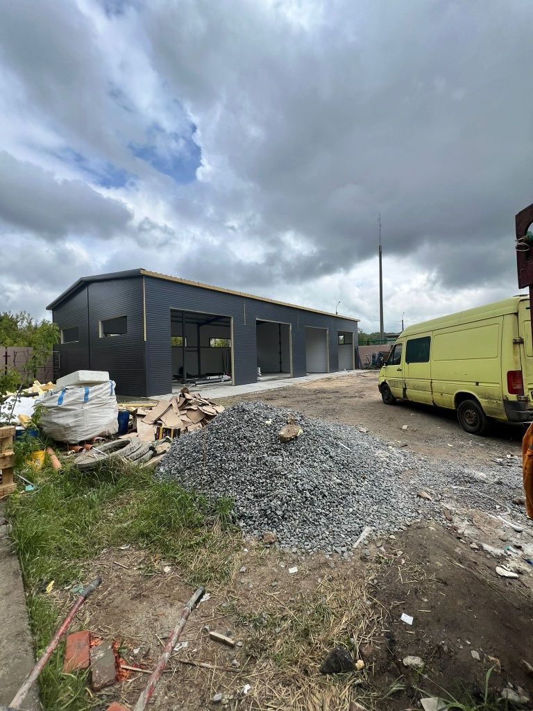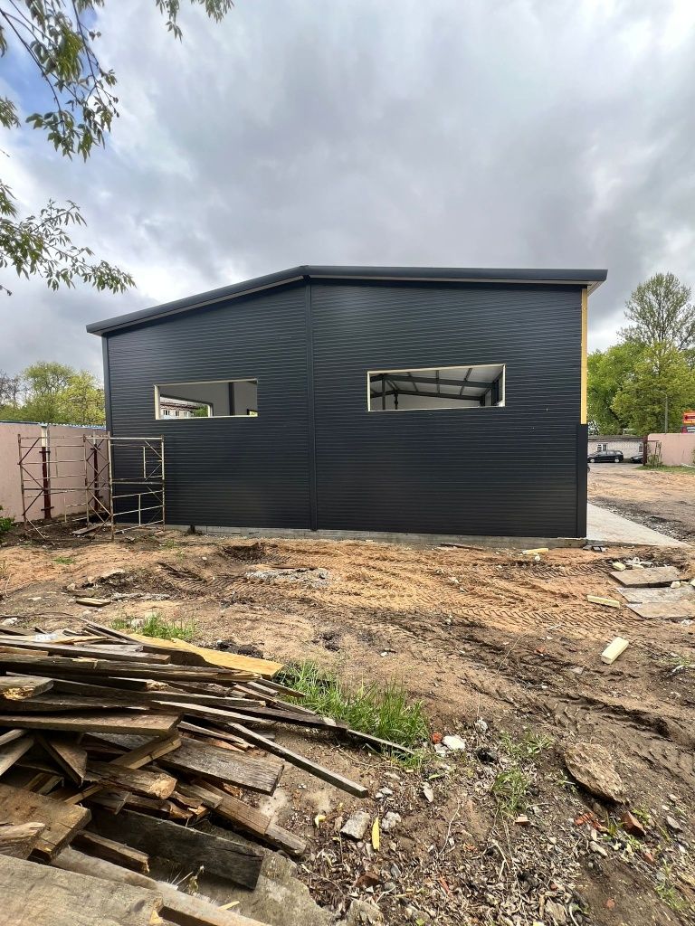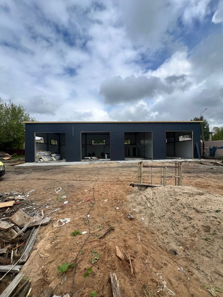 The company required sandwich panels for the quick construction of a modern car service in dark shades in Minsk, Belarus.