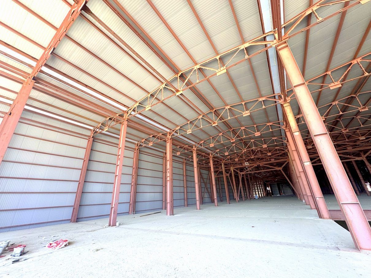 At the client's request, part of the sandwich panels on the exterior side was made in signal blue color RAL 5005, while another part was made in signal gray color RAL 7004. Roof panels on the exterior side were also made in RAL 7004. On the interior side, all sandwich panels were produced in signal white color RAL 9003.