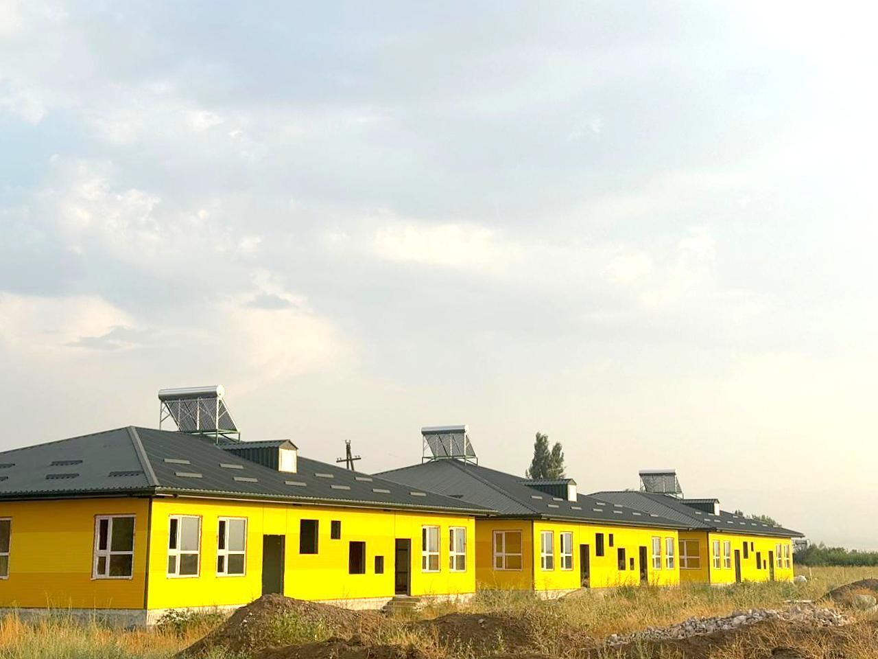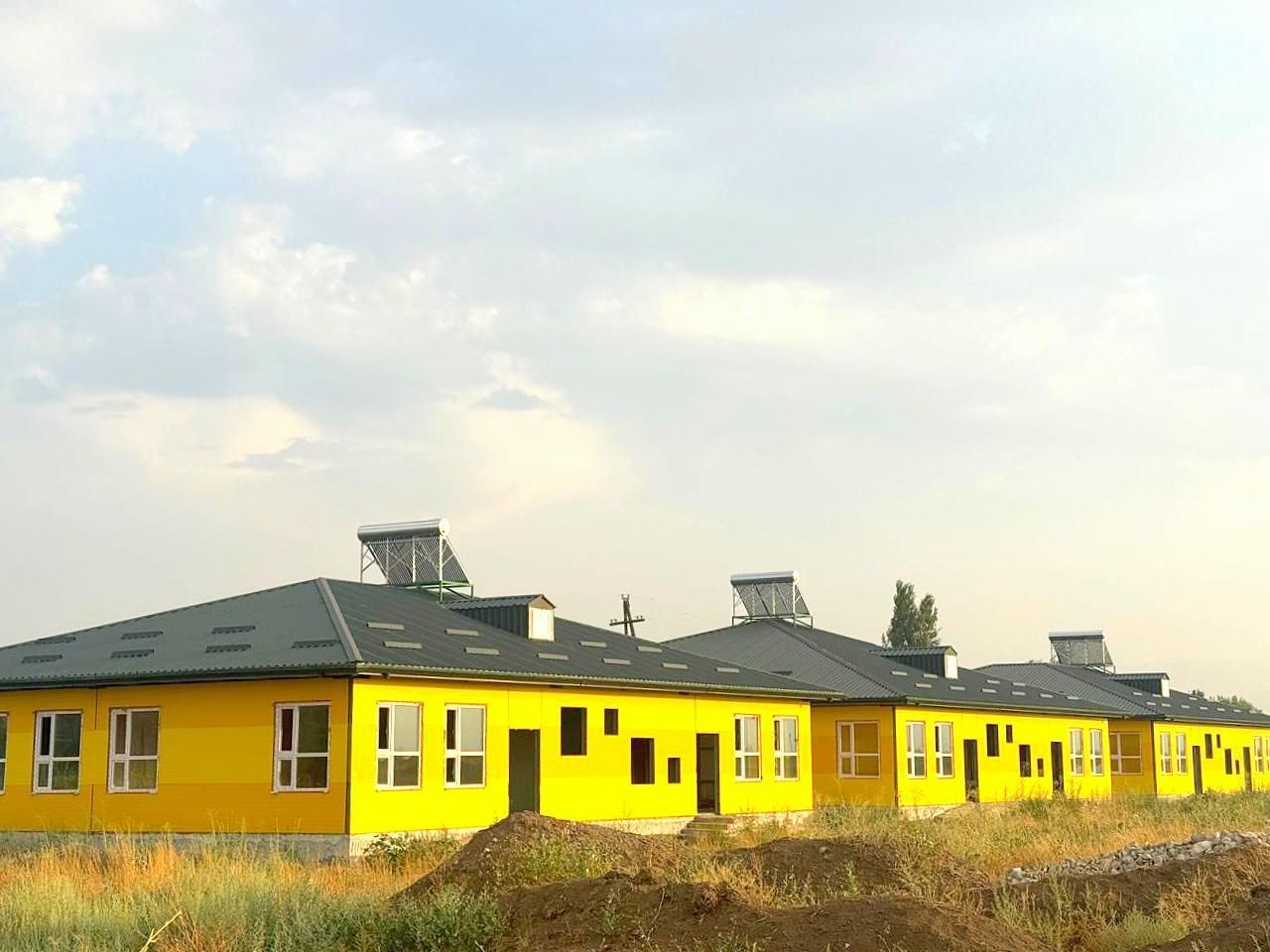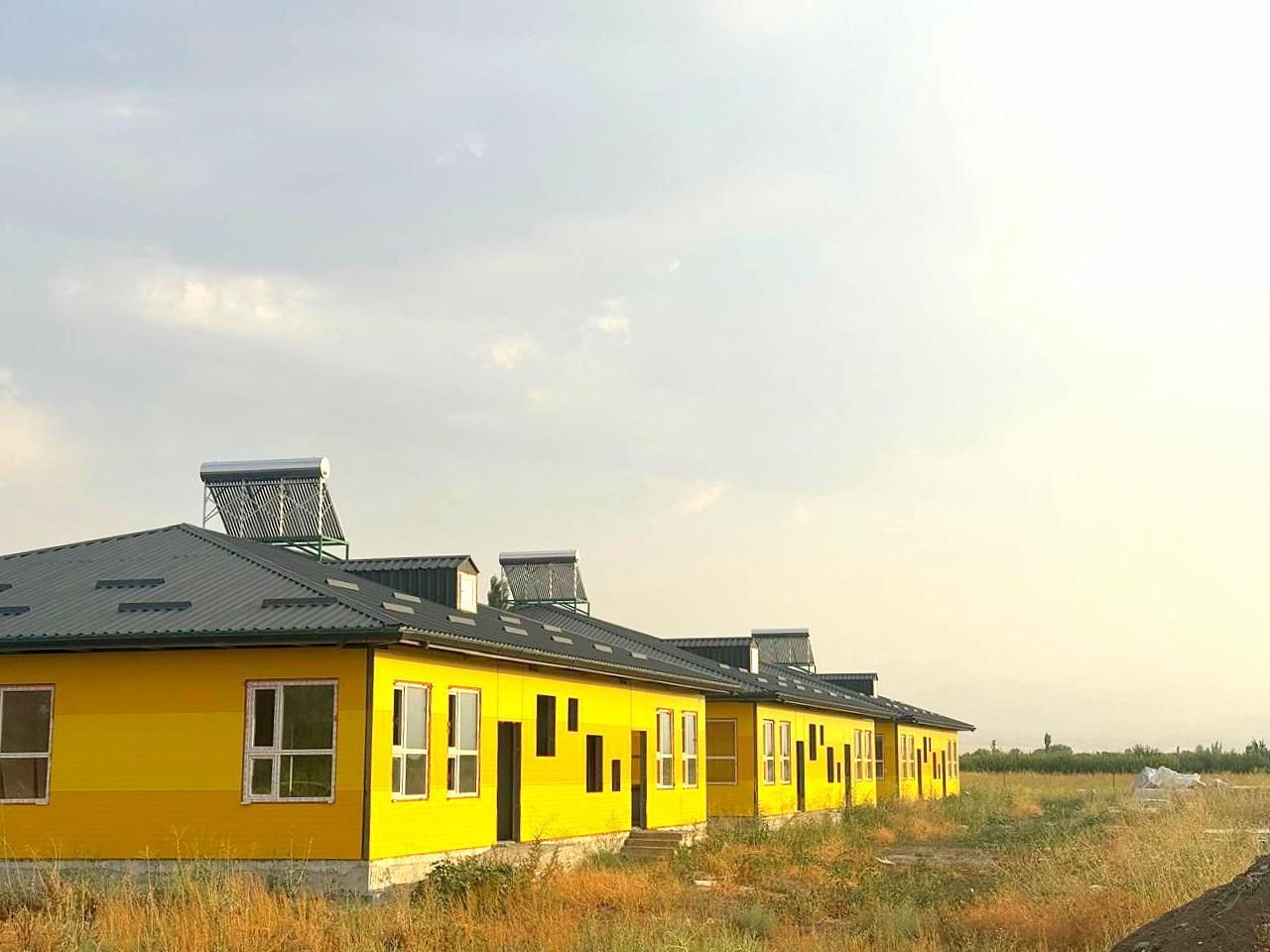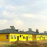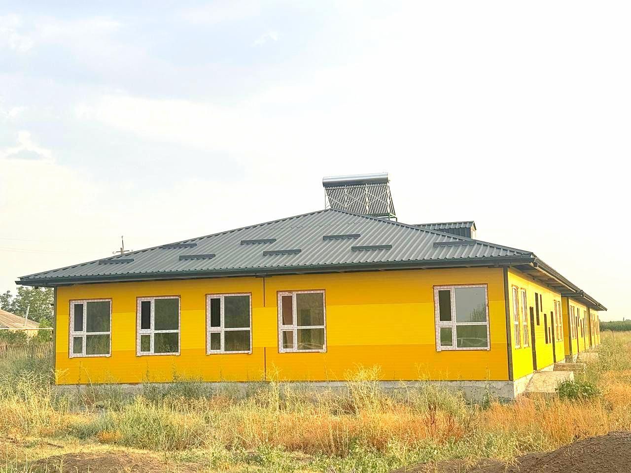 The outer side of the sandwich panels is made in bright warm colors: zinc yellow RAL 1018 and signal yellow RAL 1003. The combination of yellow shades gives the building facade a colorful and expressive appearance.